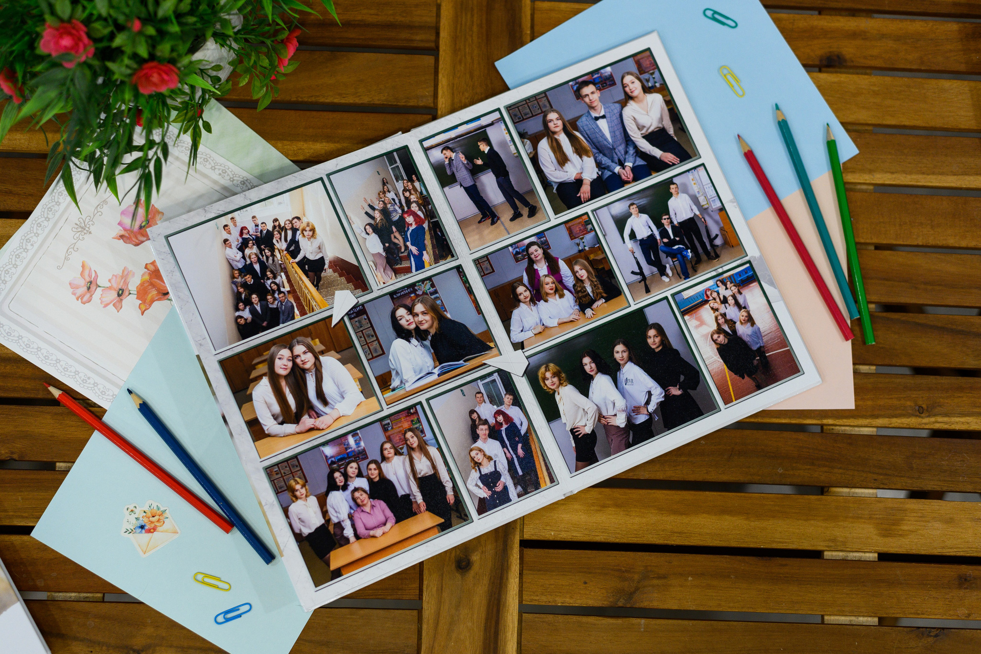 • Виньетка с портретами всех детей в школе (школьный портрет)