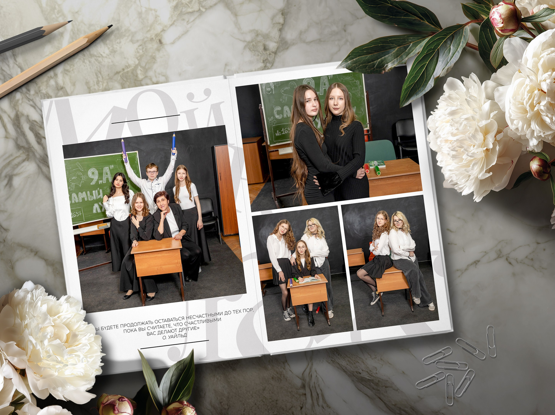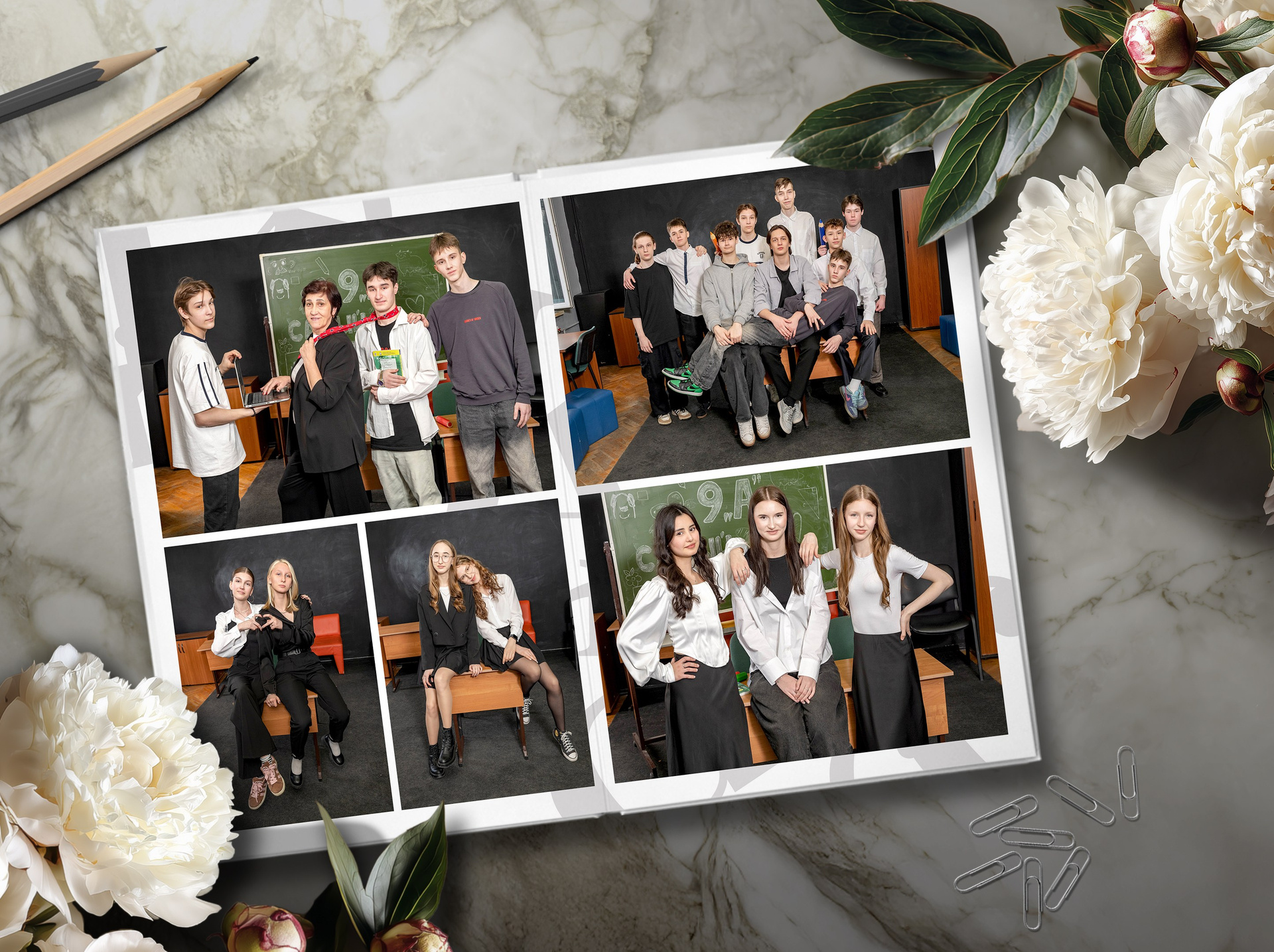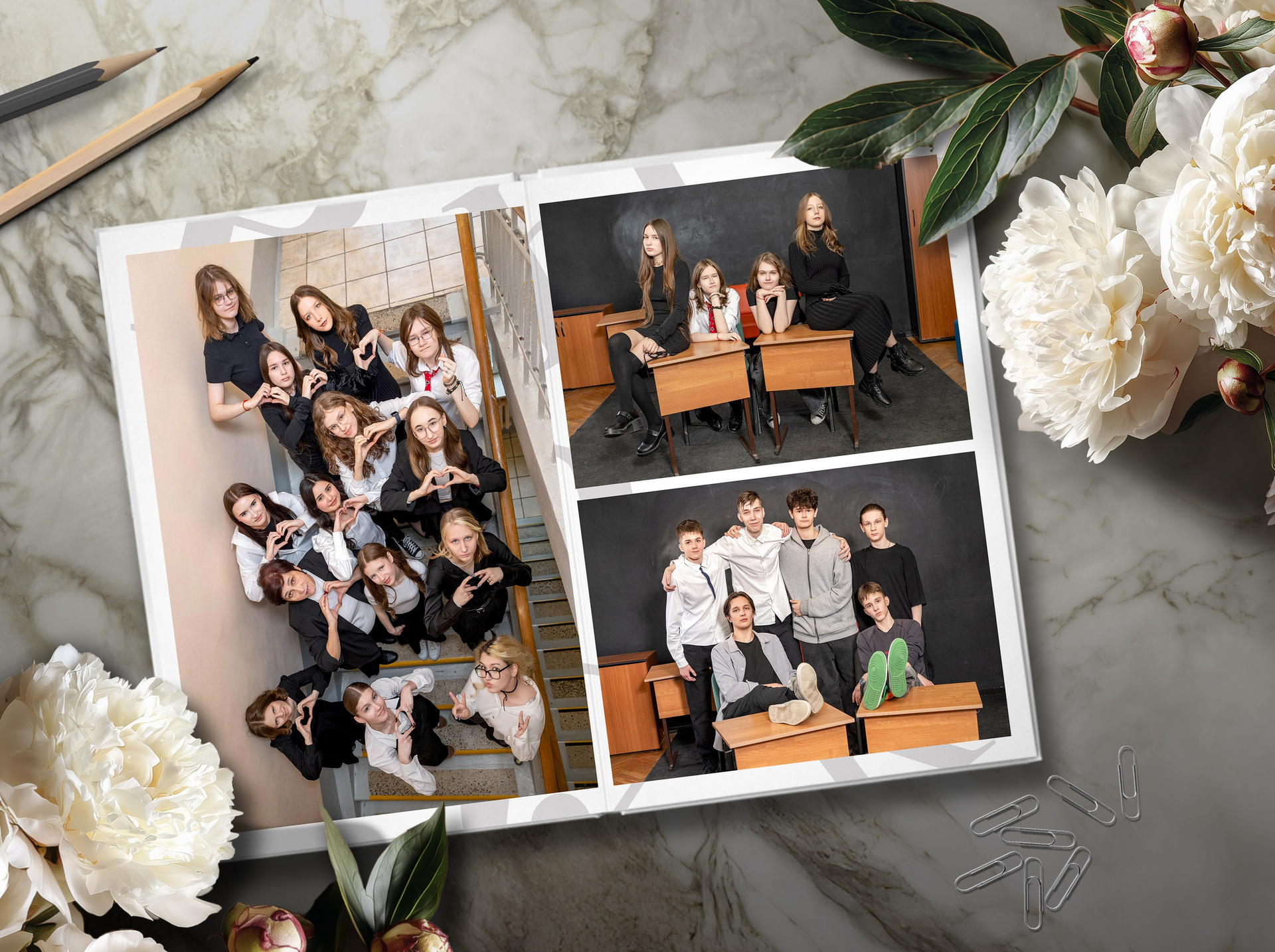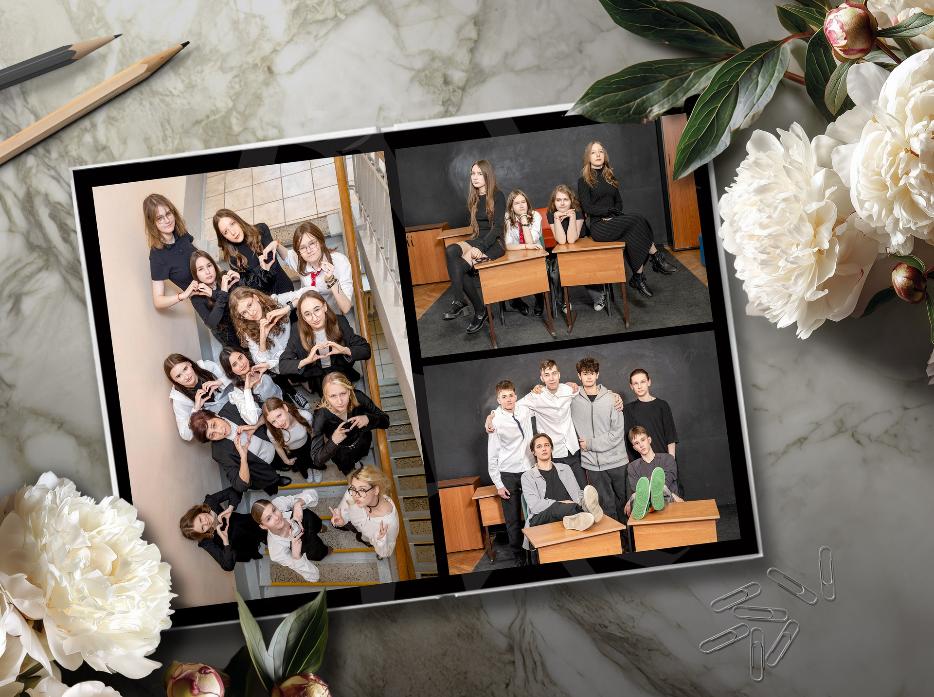 Либо все берут один цвет, либо каждый может выбрать свой цвет альбома. В одном заказе на класс допускается два разных цвета.